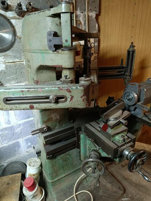 Tokarka do drewna. Wysokość około 130 cm. Długość 220 cm. Szerokość 100 cm w najszerszym punkcie. Cena 3.500 zł